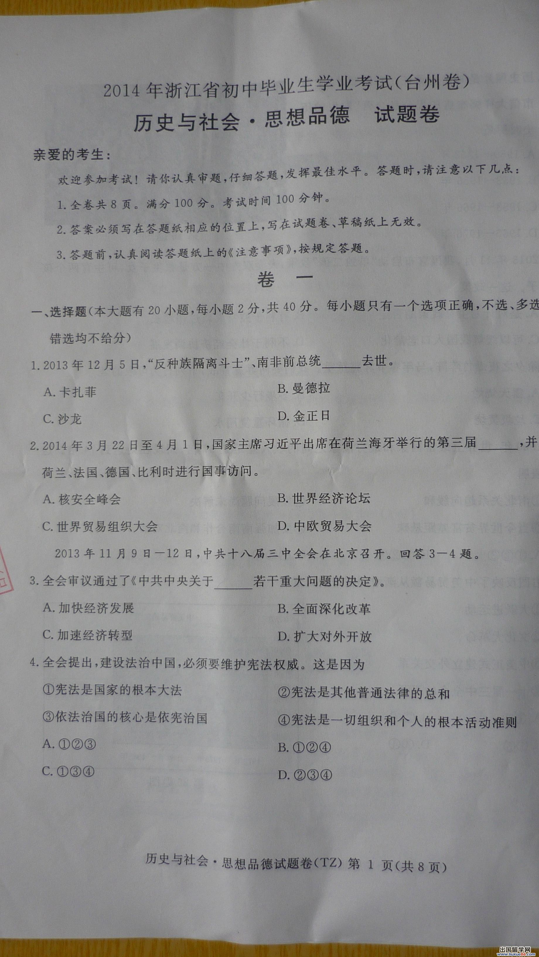 出國(guó)留學(xué)網(wǎng)中考頻道為您首發(fā)2014臺(tái)州中考政治真題及答案,希望對(duì)大家有所幫助。
