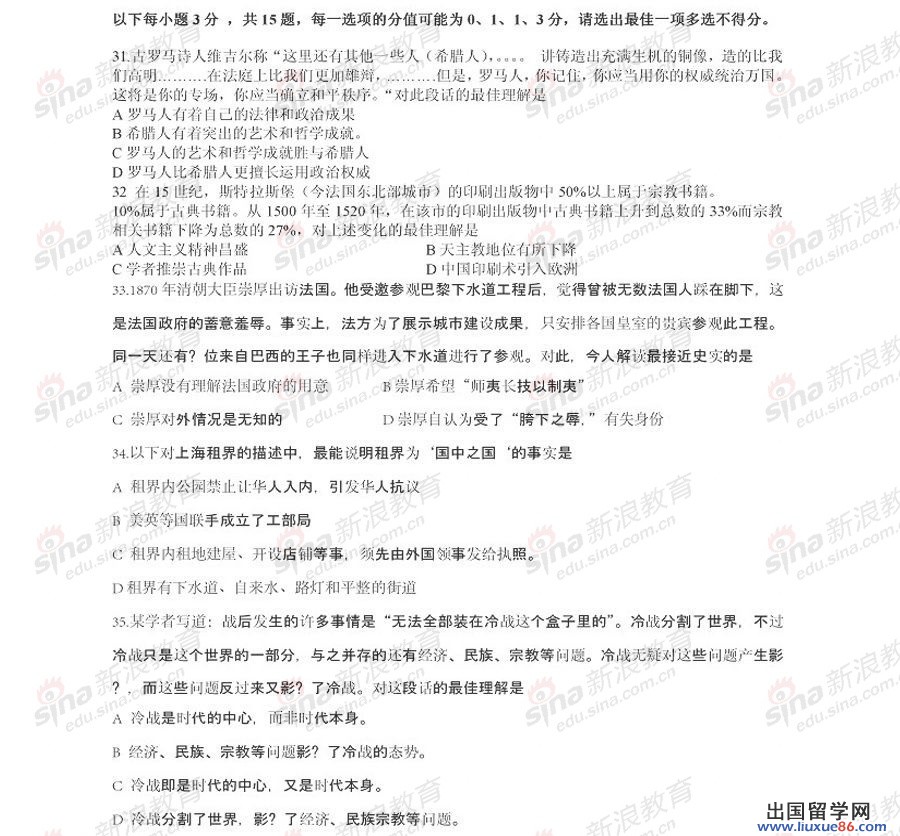 出國(guó)留學(xué)網(wǎng)高考頻道有海量的往年高考真題,更會(huì)在今年第一時(shí)間為您提供最新的高考真題。以下2013上海高考?xì)v史真題和參考答案希望對(duì)您考試練習(xí)有所幫助!祝您今年高考順利奪魁!