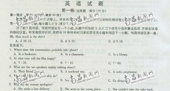 | 江西高考語(yǔ)文答案 | 江西高考數(shù)學(xué)答案 | 江西高考英語(yǔ)答案 | 江西高考理綜答案 | 江西高考文綜答案 |