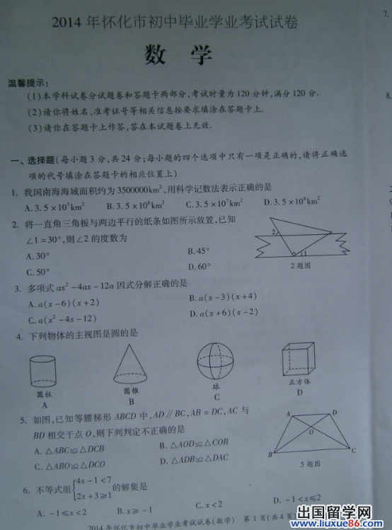 以下2014年懷化中考數(shù)學(xué)真題由出國留學(xué)網(wǎng)中考頻道為您提供,希望對您有所幫助!