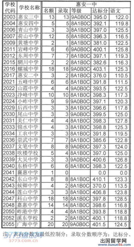 出國(guó)留學(xué)網(wǎng)中考頻道為您提供最及時(shí)的資訊,下面的2014惠安縣一中定向招生切線分?jǐn)?shù)線希望對(duì)您有所幫助