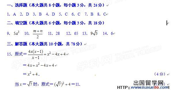 《2014年中考真題》 《2014年中考試題答案》 2013年中考數(shù)學(xué)考試已經(jīng)圓滿結(jié)束,2014年中考即將來(lái)臨,出國(guó)留學(xué)網(wǎng)(liuxue86.com)小編已為大家整理出吉林長(zhǎng)春2013年中考數(shù)學(xué)答案(word版),幫助各位同學(xué)們對(duì)自己的數(shù)學(xué)成績(jī)進(jìn)行預(yù)估,敬請(qǐng)各位考生關(guān)注出國(guó)留學(xué)網(wǎng)(liuxue86.com)中考頻道其他科目的試題及答案的公布。