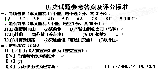 點(diǎn)擊下載:安徽馬鞍山2013年中考?xì)v史答案(word版).doc