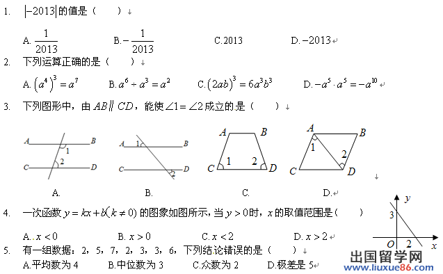 2013年中考數(shù)學(xué)考試已經(jīng)圓滿結(jié)束,2014年中考即將來(lái)臨,出國(guó)留學(xué)網(wǎng)(liuxue86.com)小編已為大家整理出湖南婁底2013年中考數(shù)學(xué)試題(word版),幫助各位同學(xué)們對(duì)自己的數(shù)學(xué)成績(jī)進(jìn)行預(yù)估,敬請(qǐng)各位考生關(guān)注出國(guó)留學(xué)網(wǎng)(liuxue86.com)中考頻道其他科目的試題及答案的公布。