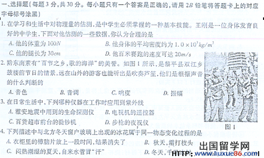《2014年中考真題》 《2014年中考試題答案》 2013年中考數(shù)學(xué)考試已經(jīng)圓滿結(jié)束,2014年中考即將來臨,出國留學(xué)網(wǎng)(liuxue86.com)小編已為大家整理出貴州黔東南2013年中考物理試題(word版),幫助各位同學(xué)們對自己的數(shù)學(xué)成績進(jìn)行預(yù)估,敬請各位考生關(guān)注出國留學(xué)網(wǎng)(liuxue86.com)中考頻道其他科目的試題及答案的公布。