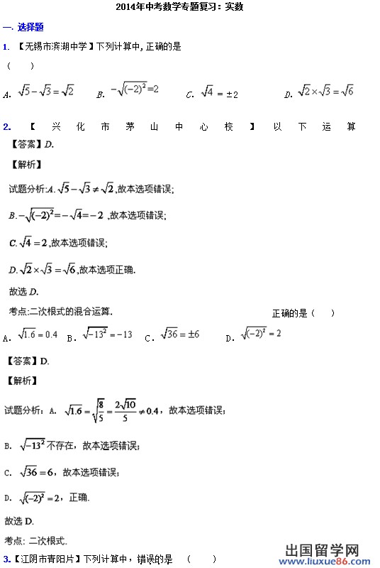出國(guó)留學(xué)網(wǎng)小編為大家提供《2014年中考數(shù)學(xué)專題復(fù)習(xí)》,希望大家喜歡!這篇文章主要是2014年中考數(shù)學(xué)專題復(fù)習(xí):實(shí)數(shù),2014年中考數(shù)學(xué)專題復(fù)習(xí):方程組和不等式組,2014年中考數(shù)學(xué)專題復(fù)習(xí):代數(shù)式和因式分解進(jìn)行專題復(fù)習(xí)!