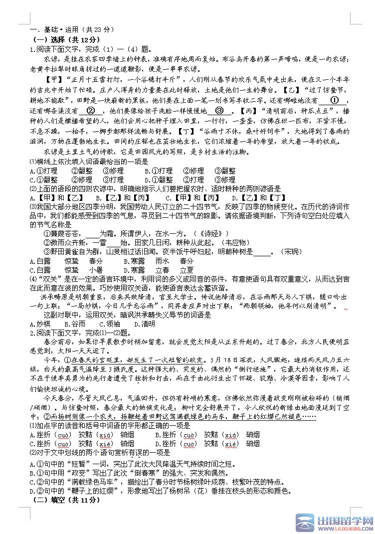 中考語(yǔ)文學(xué)習(xí)要考平時(shí)的練習(xí)和積累,出國(guó)留學(xué)網(wǎng)中考網(wǎng)為大家提供2016汕尾中考語(yǔ)文模擬試題及答案 ,更多中考語(yǔ)文試題及中考語(yǔ)文答案請(qǐng)關(guān)注我們網(wǎng)站的更新!