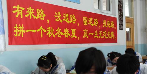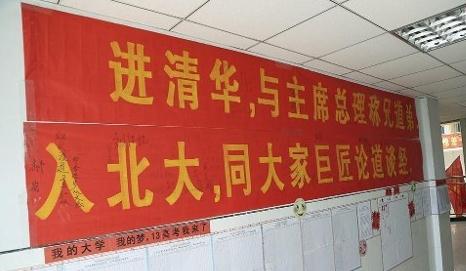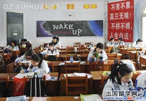 出國留學(xué)網(wǎng)高考頻道 "吾日三省吾身,高否?富否?帥否?否,滾去學(xué)習(xí)!"前段時間,這個由四川一高中生創(chuàng)作的高考標(biāo)語在網(wǎng)上瘋傳。如今,它出現(xiàn)在鄭州一些高中的高三教室里。而類似于此種高考標(biāo)語層出不窮,我們來細(xì)數(shù)一下高考沖刺標(biāo)語"九大最"。