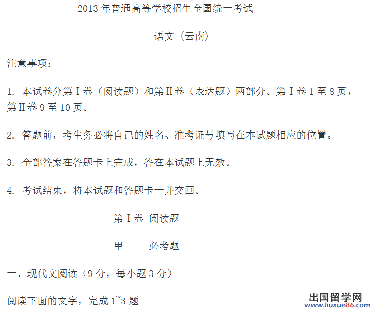 出國留學(xué)網(wǎng)高考頻道小編精心為您提供2013普洱高考語文真題及答案(清晰版),希望為您備戰(zhàn)2014年高考有所幫助!如果親們感覺本站信息對您有用,請收藏本站(ctrl+D即可收藏)點個贊!
