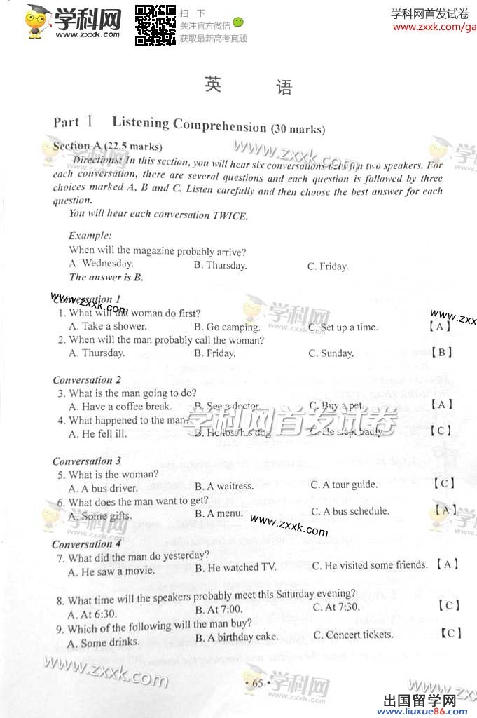 | 湖南高考語(yǔ)文答案 | 湖南高考數(shù)學(xué)答案 | 湖南高考英語(yǔ)答案 | 湖南高考理綜答案 | 湖南高考文綜答案 |