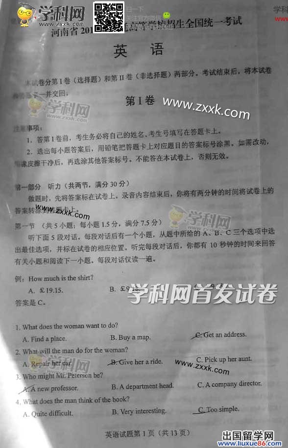 | 河北高考語文答案 | 河北高考數(shù)學答案 | 河北高考英語答案 | 河北高考理綜答案 | 河北高考文綜答案 |