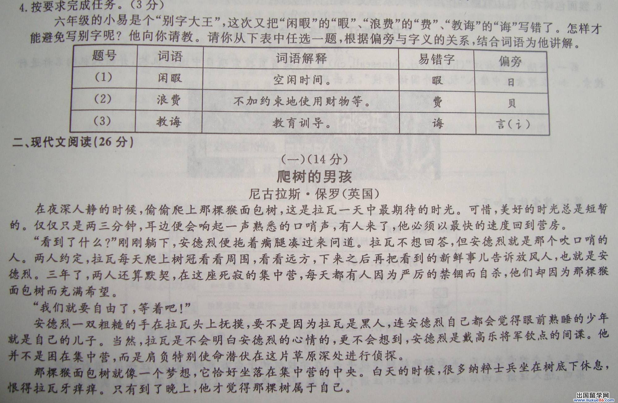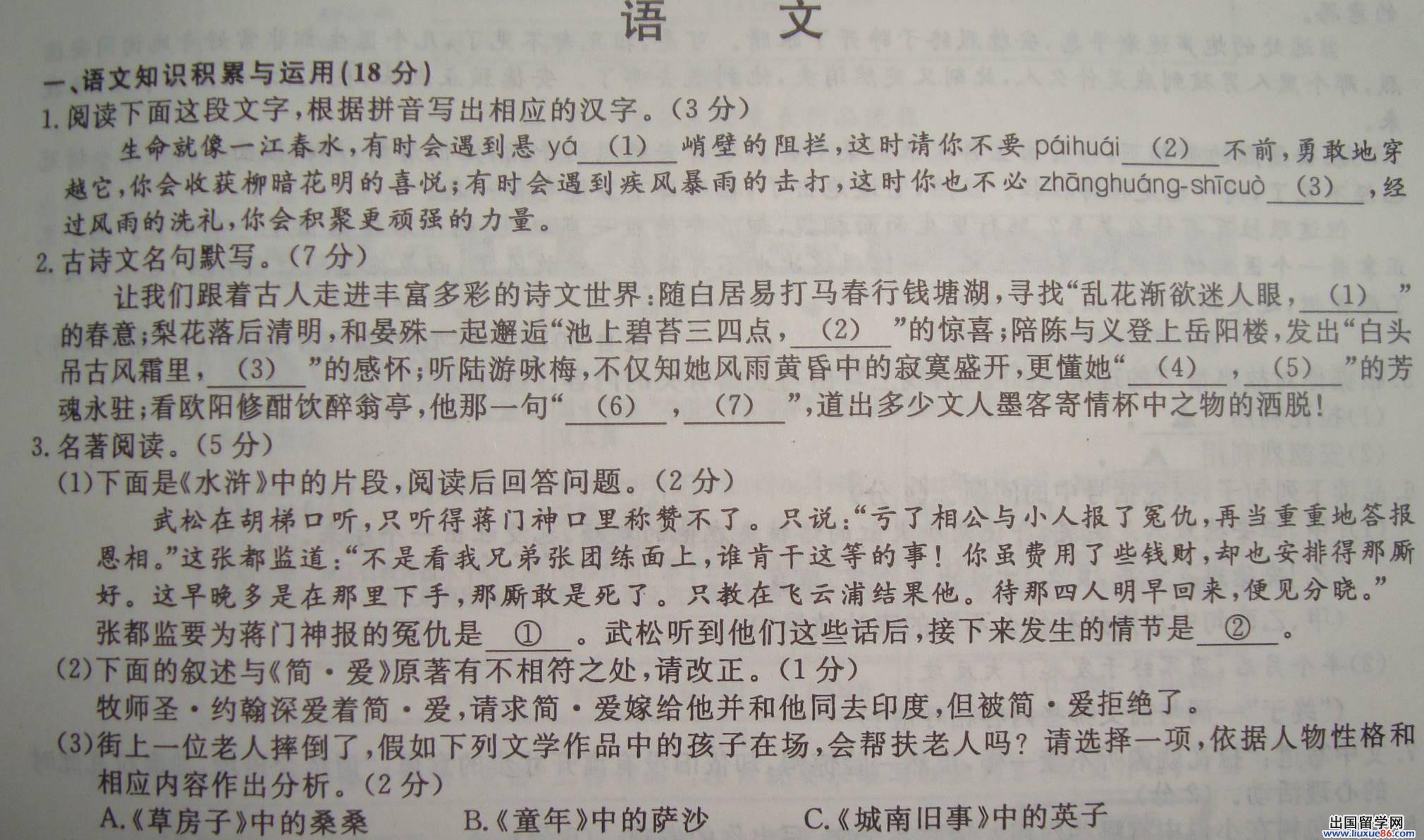 以下2014年麗水中考語(yǔ)文真題及答案由出國(guó)留學(xué)網(wǎng)中考頻道為您提供,希望對(duì)您有所幫助!