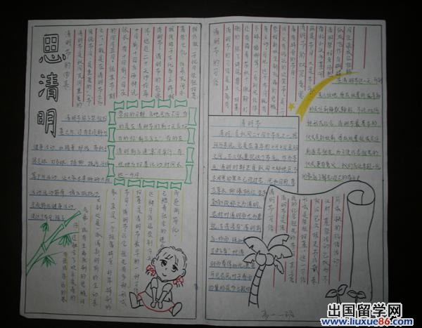 今天小編給你帶來的是關(guān)于手抄報圖片的一篇范文《高中清明節(jié)手抄報優(yōu)秀作品》,歡迎大家參考借鑒,想要更多的小學(xué)生手抄報圖片,歡迎訪問出國留學(xué)網(wǎng)。