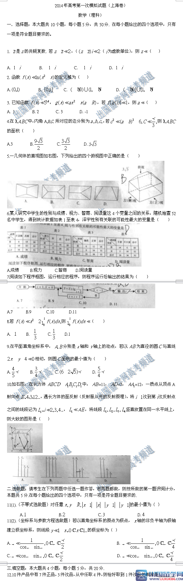 | 上海高考語文試題 | 上海高考數(shù)學(xué)試題 | 上海高考英語試題 | 上海高考理綜試題 | 上海高考文綜試題 |