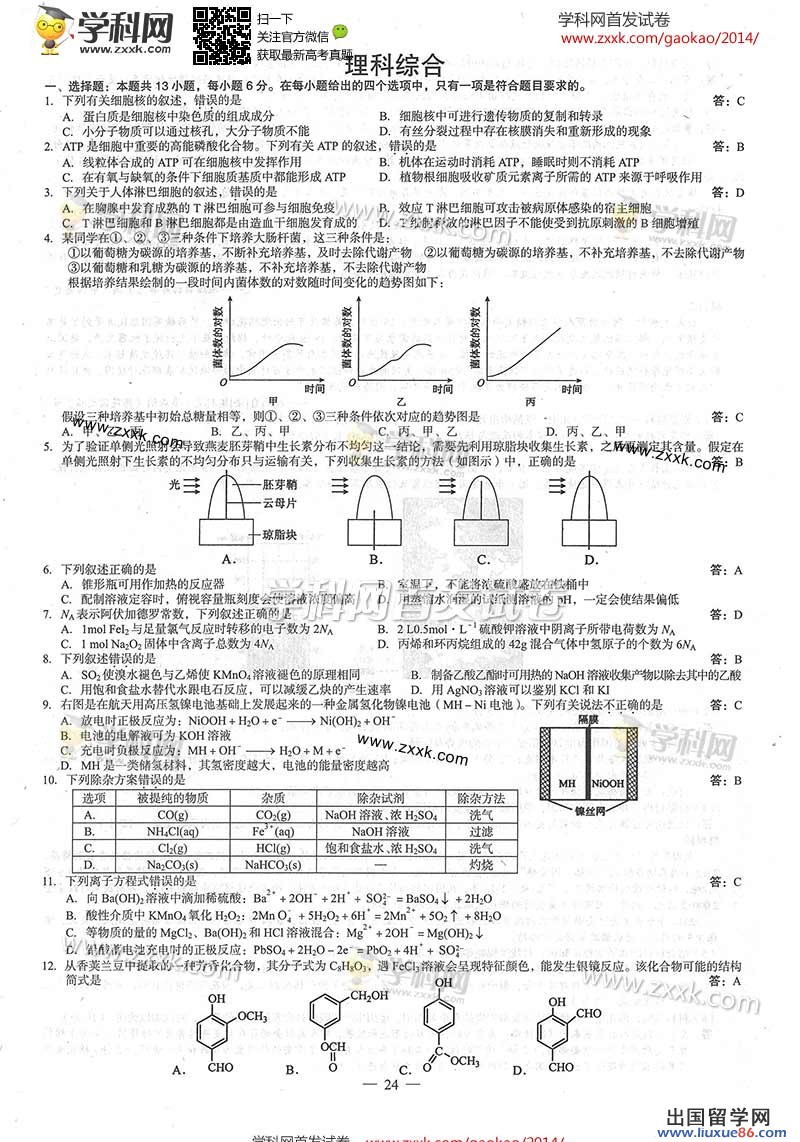 身為一名高三學(xué)生,備受壓力與煎熬,深知高考的重要,祝愿每一位參加高考的同學(xué)都能實(shí)現(xiàn)自己的大學(xué)夢(mèng),真題與答案奉上,讓你第一時(shí)間知曉自己的成績(jī),出國(guó)留學(xué)網(wǎng)高考頻道第一時(shí)間為您提供2014理綜大綱版高考真題及答案解析。