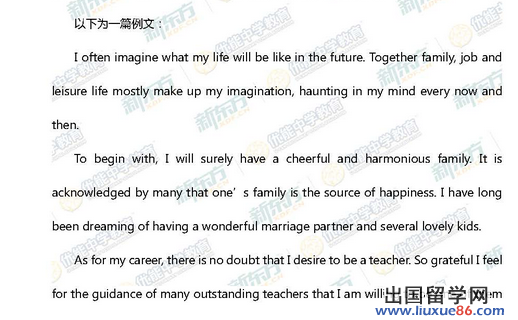 六月的高考是全國(guó)矚目的一次考試,這次的高考對(duì)于很多考生來(lái)說(shuō)都是決定未來(lái)的一次考試,因此,在考試過(guò)后,很多考生都想核對(duì)一下答案,好做到心中有數(shù)。出國(guó)留學(xué)網(wǎng)高考頻道的小編會(huì)及時(shí)為廣大考生提供2014年吉林英語(yǔ)高考作文參考范文,有需要的考生可以在考題公布后刷新本頁(yè)面(按ctrl+F5),希望對(duì)大家有所幫助。