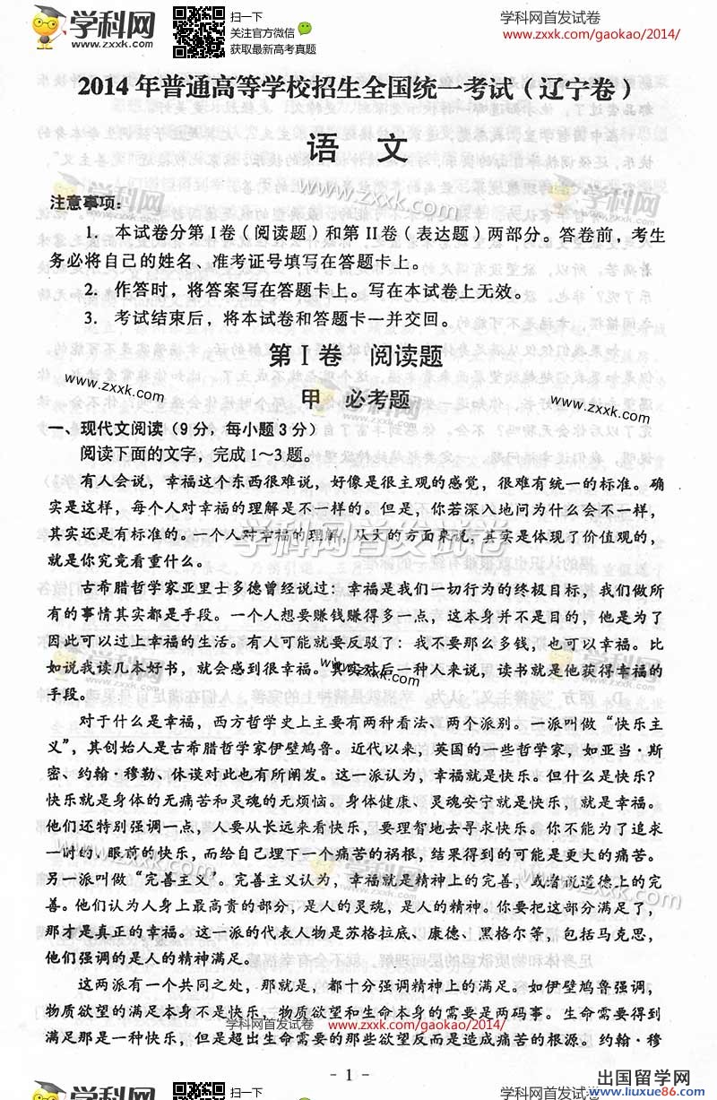 出國留學(xué)網(wǎng)高考頻道提醒您人生的精彩在于追求,而不必太在意得失,何況有得也必有失!高考已經(jīng)結(jié)束,考生們就好好玩一下吧,不必糾結(jié)于自己的發(fā)揮,本網(wǎng)站為您首發(fā)2014年遼寧高考語文真題及答案,希望對您估分有所幫助。