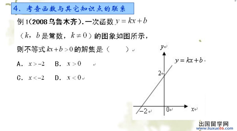 同學(xué)們復(fù)習(xí)《函數(shù)與其它知識(shí)點(diǎn)的聯(lián)系》時(shí)要注意重難點(diǎn)的掌握:初中數(shù)學(xué)知識(shí)大綱中,函數(shù)知識(shí)占了很大的知識(shí)體系比例,學(xué)好了函數(shù),掌握了函數(shù)的基本性質(zhì)及其應(yīng)用,真正精通了函數(shù)的每一個(gè)模塊知識(shí),會(huì)做每一類函數(shù)題型,就讀于中考中數(shù)學(xué)成功了一大半,數(shù)學(xué)成績(jī)自然上高峰,同時(shí),函數(shù)的思想是學(xué)好其他理科類學(xué)科的基礎(chǔ)。更多有關(guān)2014中考數(shù)學(xué)的信息可登錄出國(guó)留學(xué)網(wǎng)數(shù)學(xué)頻道,歡迎收藏本站(CTRL+D即可收藏)!