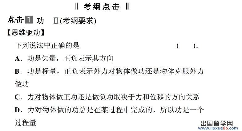 一個題目往往不是會了才做,而是做了才會。當(dāng)思考中出現(xiàn)斷點時,要敢于嘗試。如我們常說解決力學(xué)問題有三大途徑,那么當(dāng)用能量守恒解決不了這個問題時,換一種方法一定會柳暗花明,要堅定這種信念并能實施這種做法。更多有關(guān)2014高考理綜的信息可登錄出國留學(xué)網(wǎng)理綜頻道,歡迎收藏本站(CTRL+D即可收藏)!