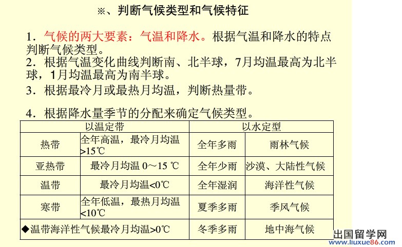同學(xué)們復(fù)習(xí)《判斷氣候類型和氣候特征》時要注意重難點:1.了解氣候類型的分布規(guī)律,理解影響氣候的因素。2.掌握氣候類型判斷的一般步驟和方法。更多有關(guān)2014中考地理的信息可登錄出國留學(xué)網(wǎng)地理頻道,歡迎收藏本站(CTRL+D即可收藏)!