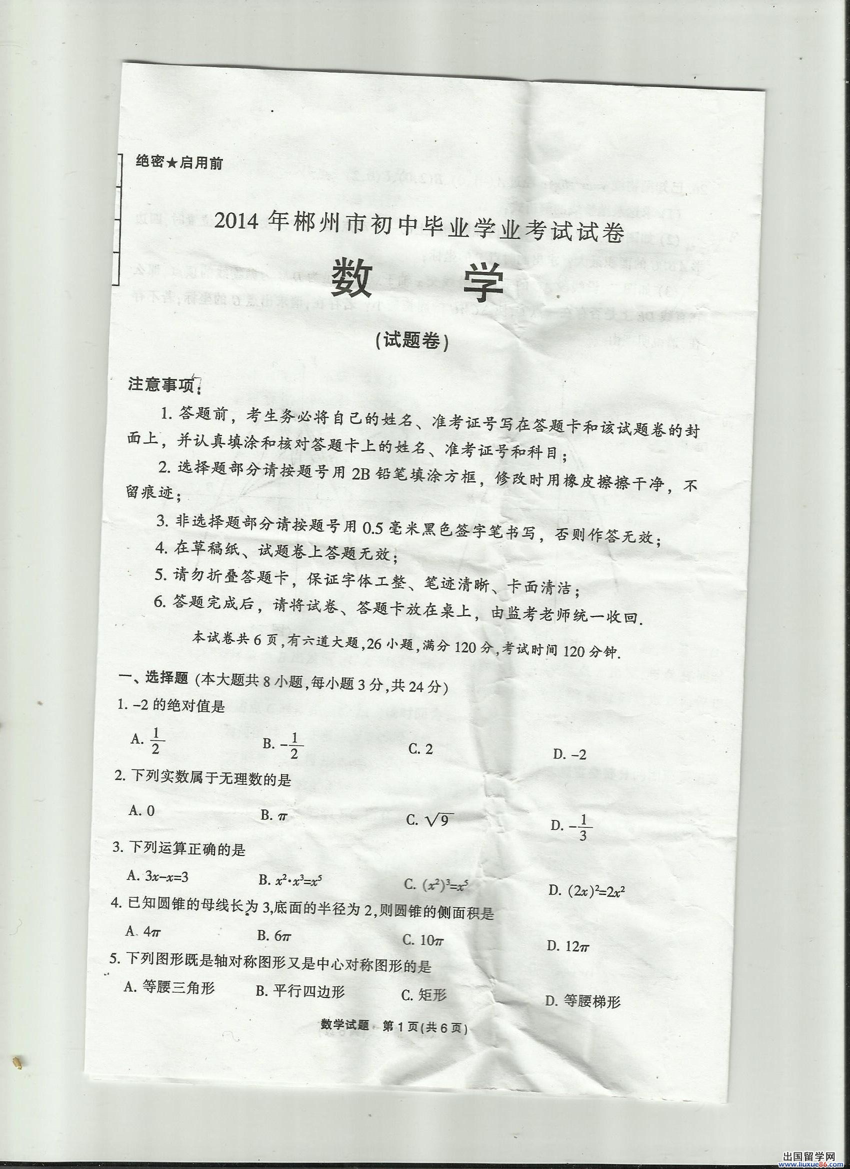 以下2014年郴州中考數(shù)學(xué)真題由出國留學(xué)網(wǎng)中考頻道為您提供,希望對您有所幫助!
