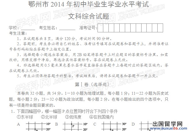 以下2014年鄂州中考文綜真題及答案由出國留學(xué)網(wǎng)中考頻道為您提供,希望對您有所幫助!