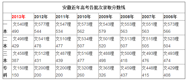 根據(jù)以上的數(shù)據(jù),我們可以看出安徽2013年高考分?jǐn)?shù)線比2012年浮動很大,所以2014年的安徽高考線應(yīng)該漲幅會很比較大,以下是出國留學(xué)網(wǎng)高考頻道為您精心預(yù)測。