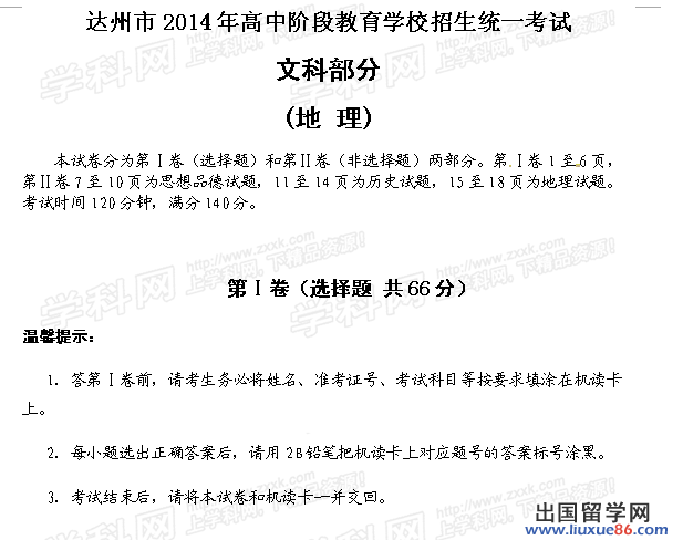 以下2014年達州中考地理真題及答案由出國留學(xué)網(wǎng)中考頻道為您提供,希望對您有所幫助!