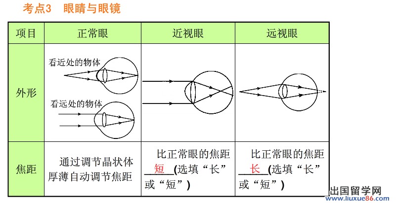 同學(xué)們復(fù)習(xí)《眼睛與眼鏡?》時要注意重難點(diǎn):重點(diǎn):運(yùn)用前面所學(xué)的凸透鏡成像規(guī)律的知識,加深對眼睛的了解。難點(diǎn):近視眼、遠(yuǎn)視眼的成因及矯正方法。更多有關(guān)2014中考物理的信息可登錄出國留學(xué)網(wǎng)物理頻道,歡迎收藏本站(CTRL+D即可收藏)!