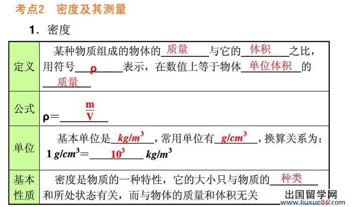 同學(xué)們復(fù)習(xí)《密度及其測(cè)量》時(shí)要注意重難點(diǎn):明白密度是物質(zhì)的一種性質(zhì),能用密度知識(shí)解釋生活中的一些物理現(xiàn)象,會(huì)使用天平和量筒測(cè)量物質(zhì)密度。更多有關(guān)2014中考物理的信息可登錄出國(guó)留學(xué)網(wǎng)物理頻道,歡迎收藏本站(CTRL+D即可收藏)!