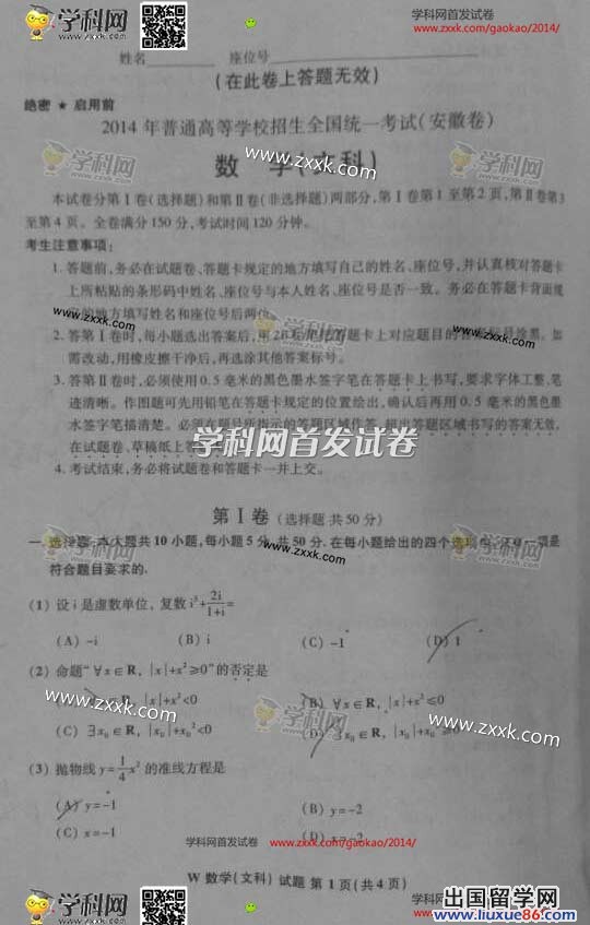 高考就像清晨花瓣上晶瑩的露珠,折射著太陽的光芒,充滿希望。2014年高考已經(jīng)結(jié)束,出國留學(xué)網(wǎng)高考頻道為您第一時間發(fā)布2014年安徽高考理科數(shù)學(xué)真題及答案,如果我們的信息讓你打心眼里覺得及時,請為我們網(wǎng)站點(diǎn)個贊,多來關(guān)顧哦。