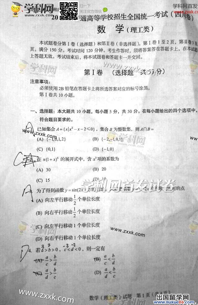 2014高考時(shí)間是6月7-9日,出國留學(xué)網(wǎng)小編在此提醒各位學(xué)子注意北京高考期間的天氣,不要讓天氣影響了考試的心情。我們應(yīng)廣大考生要求,在考后為大家首發(fā)2014四川理數(shù)真題及答案最新發(fā)布。如果您需要查找的真題及答案沒有顯示,請按ctrl+F5進(jìn)行刷新。