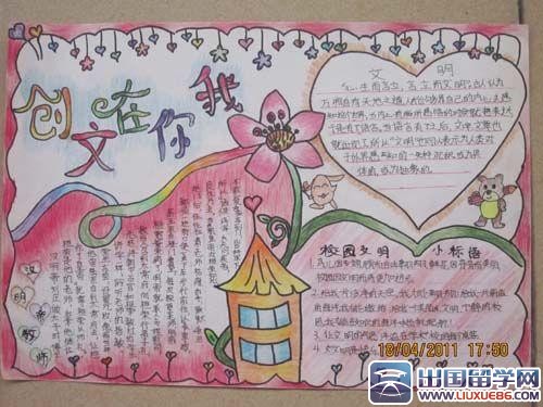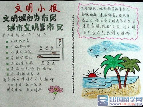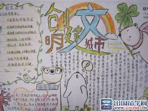 現(xiàn)代文明城市有它的標準,而且是非常適合中國國情的,比如說城市道德建設(shè)情況,民眾素質(zhì)的基本情況等等,下面是出國留學網(wǎng)為你提供的創(chuàng)建文明城市手抄報小學生,歡迎閱讀。想了解更多創(chuàng)建文明城市手抄報,請繼續(xù)關(guān)注本欄目。