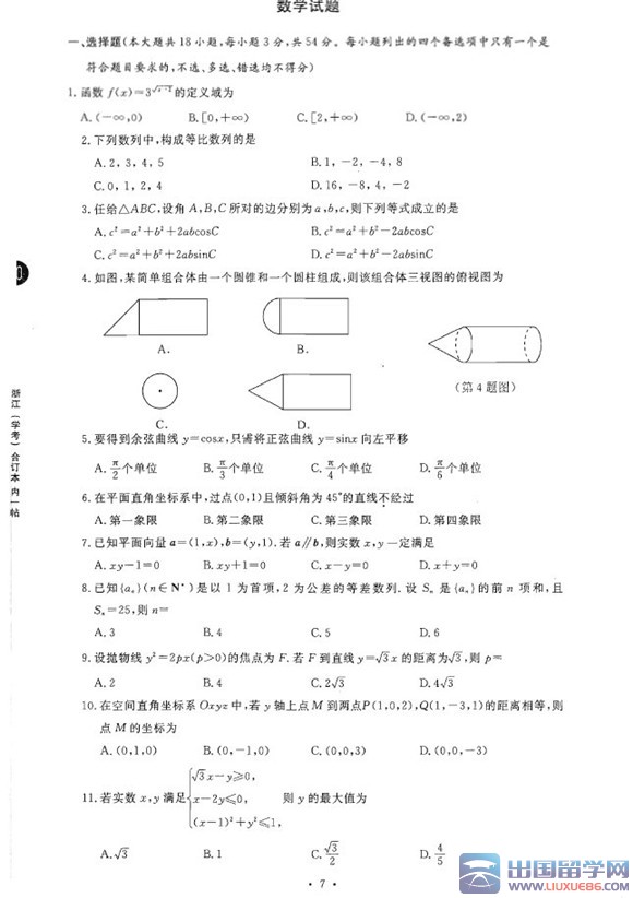 出國(guó)留學(xué)網(wǎng)高考網(wǎng)為大家提供浙江新高考學(xué)考選考數(shù)學(xué)試題及答案(2015年10月),更多高考數(shù)學(xué)請(qǐng)關(guān)注我們網(wǎng)站的更新!