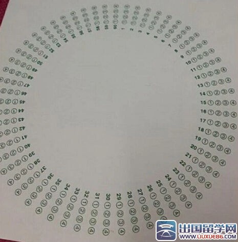 在泰國曼谷的一所大學(xué)里,機(jī)智的教師們?yōu)榉乐箤W(xué)生作弊,研究出了一種新型的單選答題卡,其采用的圓形布局和緊密的字間距使相互抄襲變得極為困難。