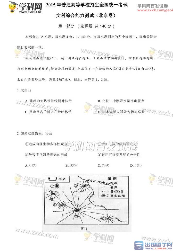書山有路勤為徑,學海無涯苦作舟。讓出國留學網(wǎng)做你通向成功的大道和邁向勝利的渡船吧。出國留學網(wǎng)將在今年高考考后為你奉上2015年北京文綜高考真題和詳細解答,讓你每一分的獲得都志得意滿,每一滴汗水都閃耀著成功的光芒,在硝煙過后做真正的勝者。