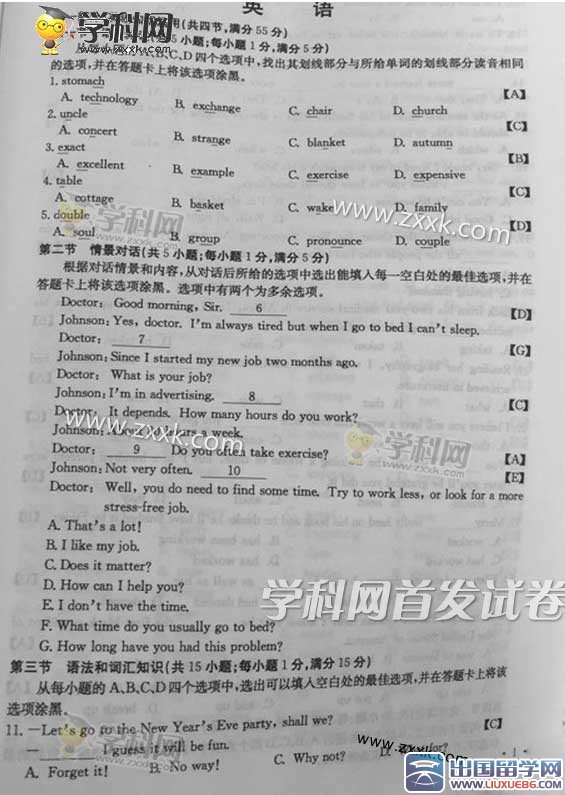 | 陜西高考語文答案 | 陜西高考數(shù)學(xué)答案 | 陜西高考英語答案 | 陜西高考理綜答案 | 陜西高考文綜答案 |