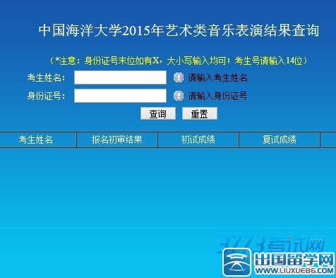 出國留學(xué)網(wǎng)高考頻道為您提供最及時的資訊,下面的2015中國海洋大學(xué)藝術(shù)類音樂表演成績查詢希望對您有所幫助