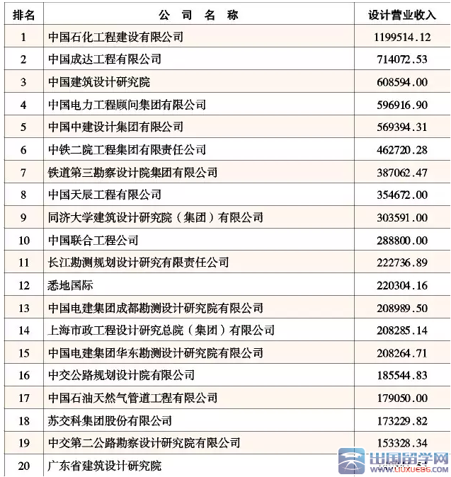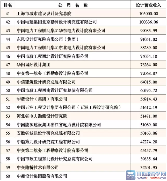 中國(guó)工程設(shè)計(jì)企業(yè)60強(qiáng)名單
