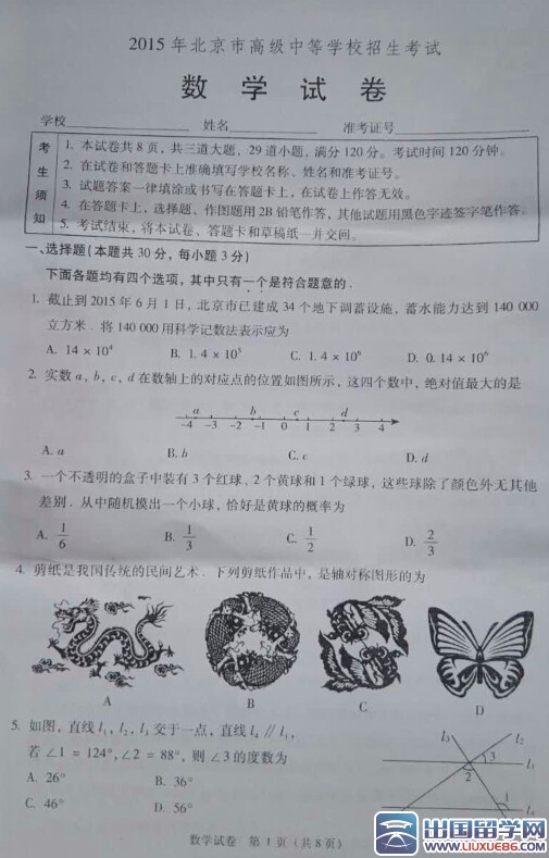 成功的信念在人腦中的作用就如鬧鐘,會(huì)在你需要時(shí)將你喚醒。出國(guó)留學(xué)網(wǎng)中考頻道的小編會(huì)及時(shí)為廣大考生提供:2015年北京中考數(shù)學(xué)試題,有需要的考生可以在考題公布后刷新本頁(yè)面(按ctrl+F5),希望對(duì)大家有所幫助。
