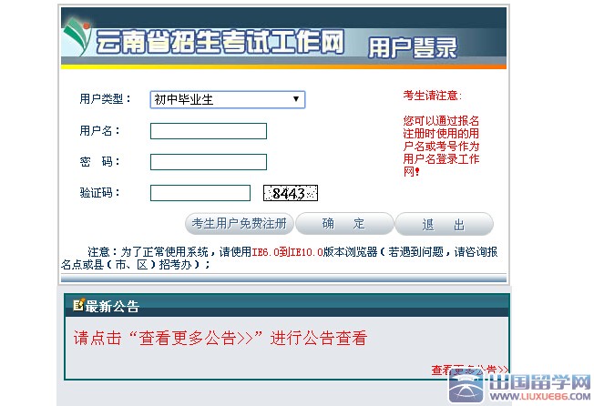 出國留學(xué)網(wǎng)高考頻道訊:2015年云南中考報(bào)名系統(tǒng)
