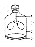 (2)用手向下拉D,C內(nèi)的容積會___________ (填"擴大"或"縮小"),B就會變___________ (填"大"或"小"),這個過程模擬的是