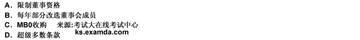 5、下列各項不屬于公司反收購戰(zhàn)略中保持公司控制權(quán)策略的是( )。{Page}
