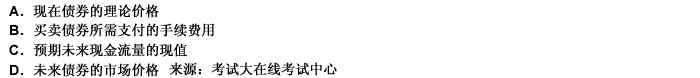 4、從投資者的角度看,債券的成本是一個對未來現(xiàn)金流人的預期收益率,它是( ?。┡c目前債券的市場價格相等的一個折現(xiàn)率。{Page}