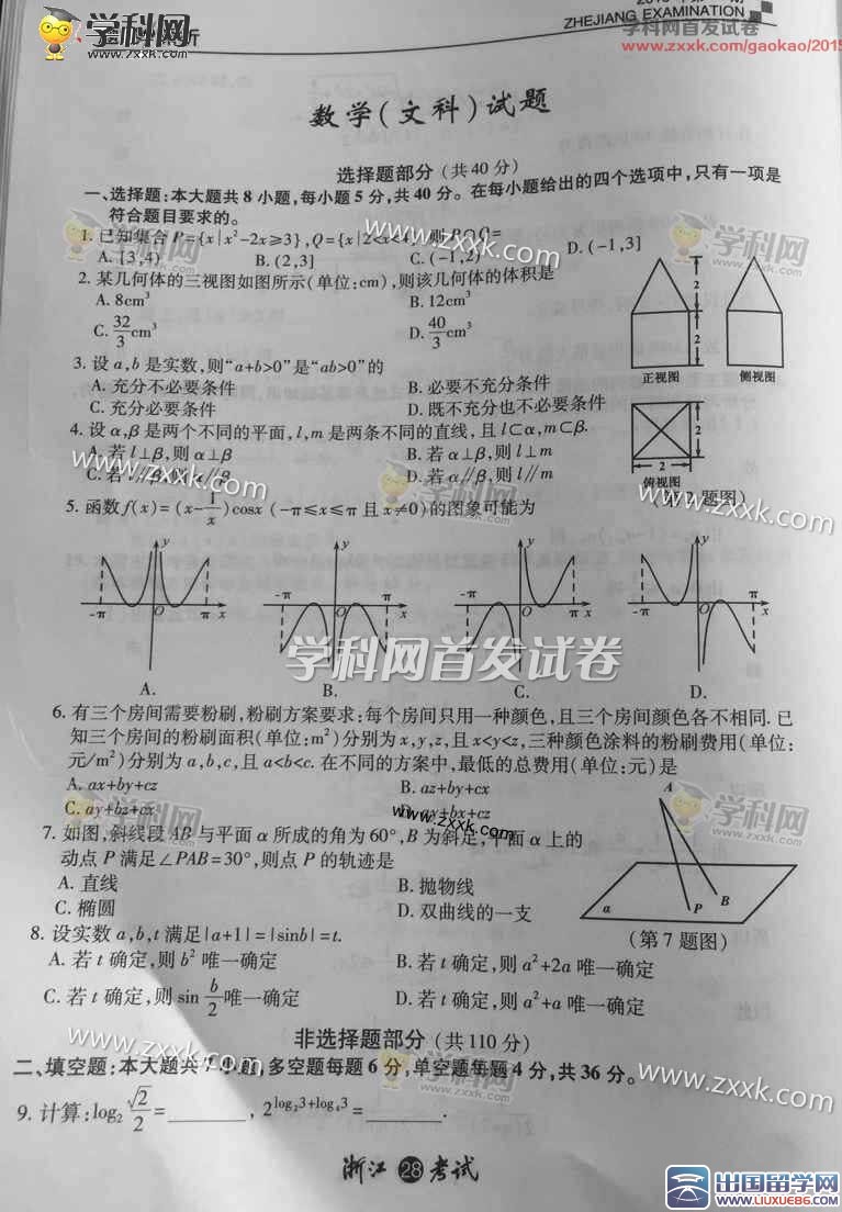 | 浙江高考語文試題 | 浙江高考數(shù)學(xué)試題 | 浙江高考英語試題 | 浙江高考理綜試題 | 浙江高考文綜試題 |