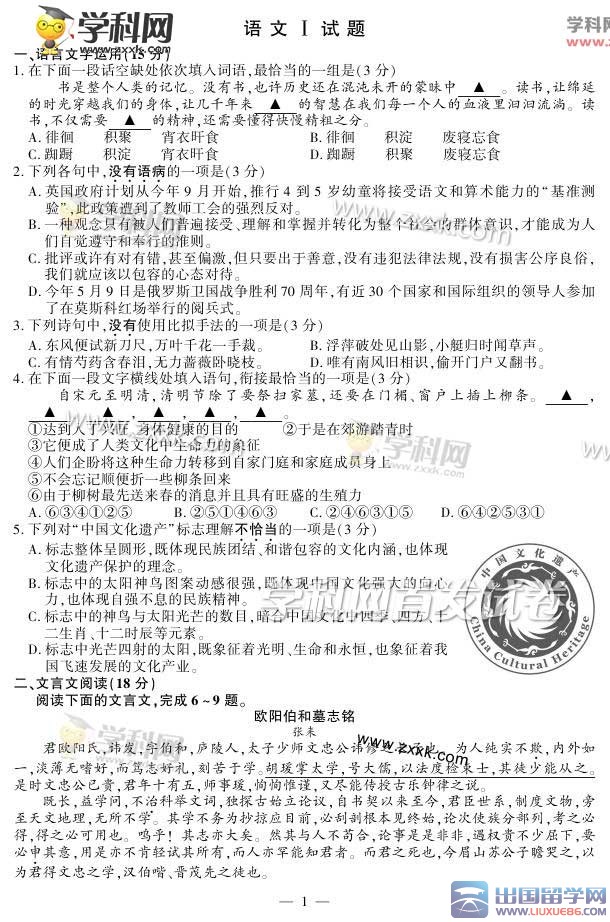 2015江蘇高考語文試題及答案解析發(fā)布