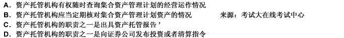 1、關(guān)于證券公司從事資產(chǎn)管理業(yè)務(wù)中的資產(chǎn)托管機構(gòu),以下說法錯誤的是( )。{Page}