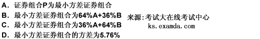 5、完全不相關(guān)的證券A和證券B,其中證券A標(biāo)準(zhǔn)差為40%,期望收益率為16%,證明B的標(biāo)準(zhǔn)差為30%,期望收益率為12%,如果證券組合P為50%A+50%B,則下列敘述正確的有( )。