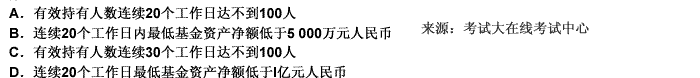 8. 開放式基金成立后的存續(xù)期內(nèi),出現(xiàn)( ?。┣闆r基金管理人應(yīng)該及時(shí)向中國證監(jiān)會(huì)報(bào)告,說明原因及解決方案。