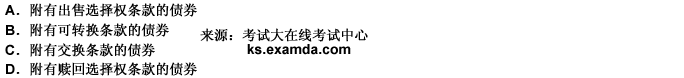 5、( )是指債券持有人具有按約定條件將債券與債券發(fā)行公司以外的其他公司的普通股票交換的選擇權(quán)。{Page}